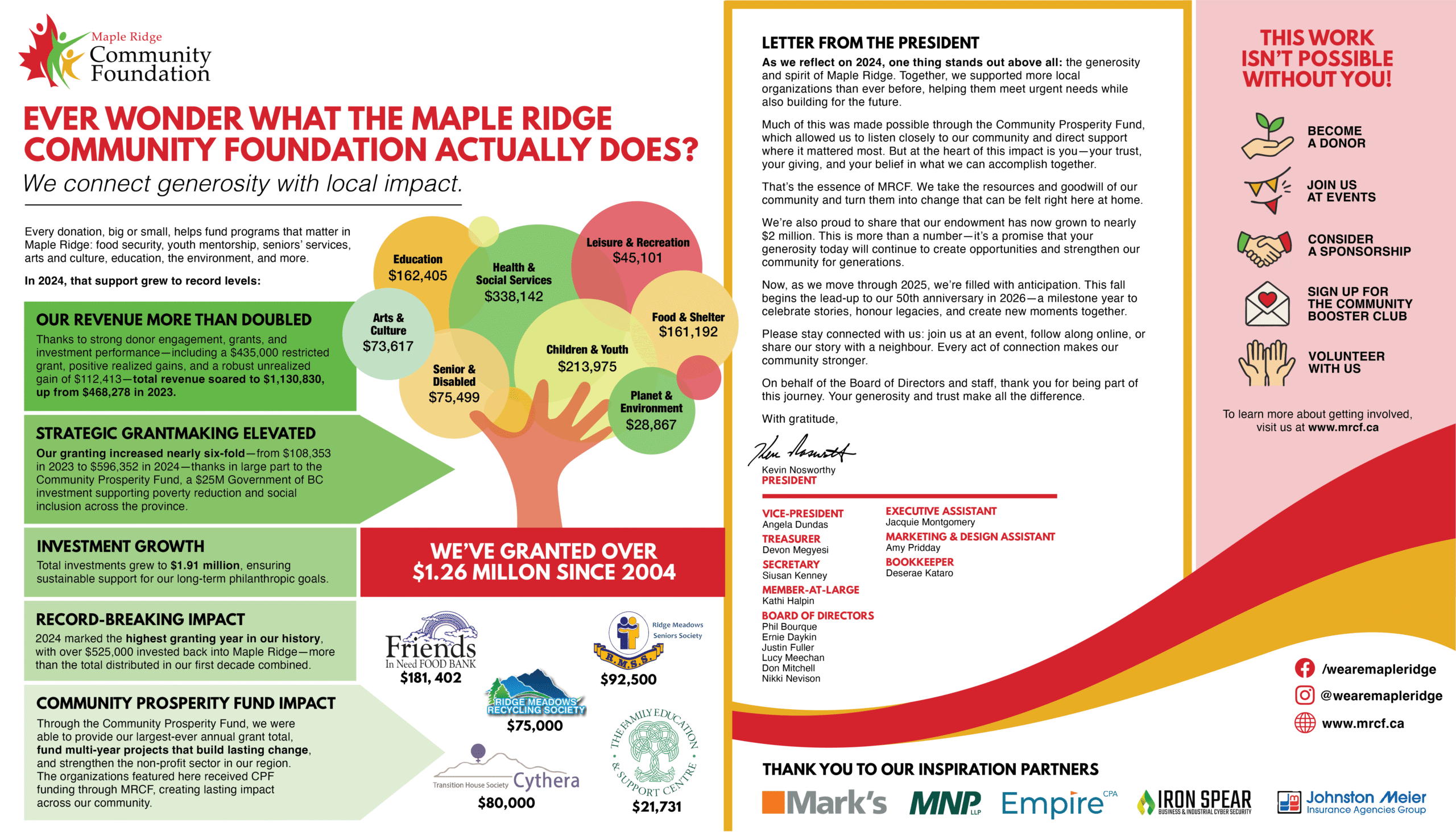 2024 Annual Report Home How to Give Grants Events Our Initiatives Our Impact Sponsorship Opportunities News Shop A PROUD MEMBER OF With acknowledgement of the Katzie First Nation and Kwantlen First Nation peoples on whose traditional and unceded territories we are privileged to learn, live, play and work.